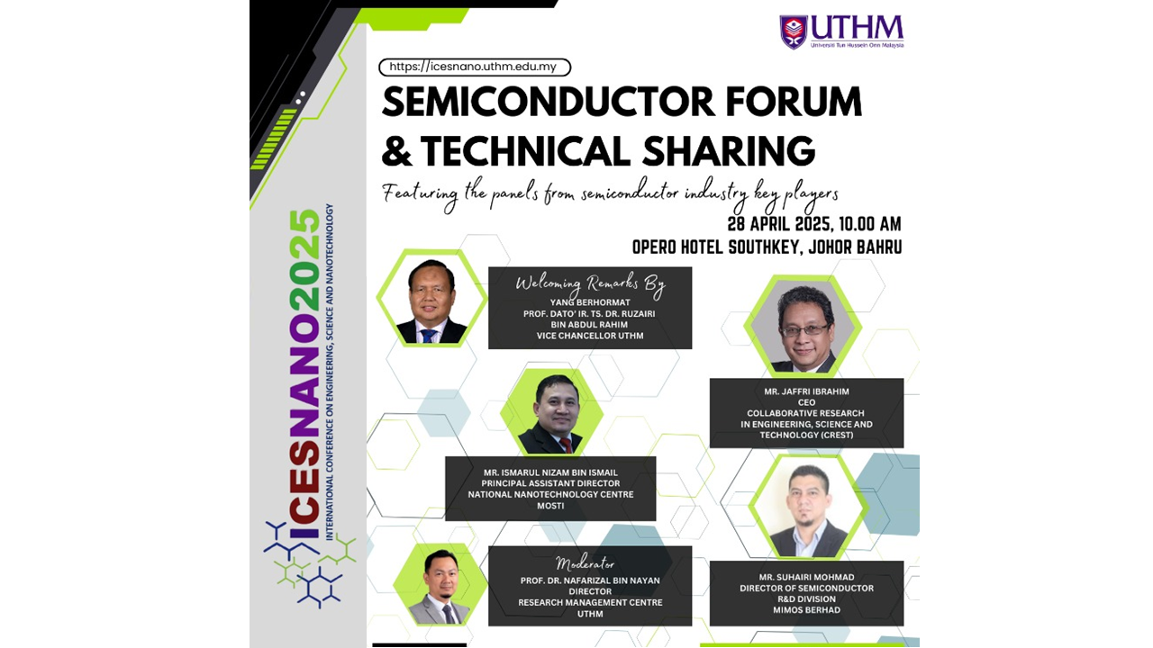 The International Conference on Engineering, Science and Nanotechnology 2025 (ICESNANO2025) is a significant event that brings together researchers, scientists, engineers, and experts worldwide to discuss advancements and innovations in engineering, science, and nanotechnology. The conference will be held from 28th - 30th April 2025 at Opero Hotel Southkey, Johor Bharu, Johor. In line with the conference theme “Sustainable Engineering, Science and Nanotechnology: Bridging Theory and Practice”, participants will present their latest research findings, which include both theoretical studies and practical applications in various subfields of engineering, sciences and nanotechnology. Besides, ICESNANO2025 provide ample opportunities for networking and collaboration among academics, industry professionals, and policymakers. This is the platform for them to exchange ideas, establish collaborations for future research projects, and discuss potential partnerships.